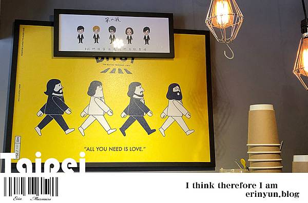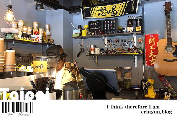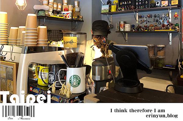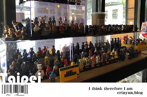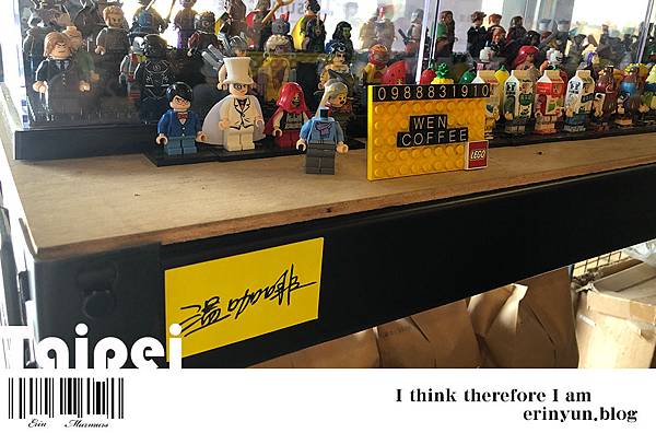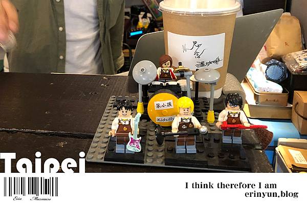 店裡除了貼滿很多幽默的温語錄 另一個是店裡也到處都有樂高的擺飾 連老闆組樂團的笨小孩也有樂高版