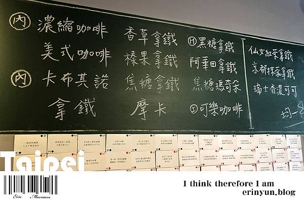 內用跟外帶咖啡的品項都在牆上 均一價80