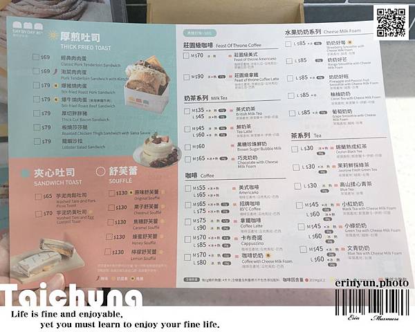 有厚煎吐司、夾心吐司、舒芙蕾、甜點蛋糕與飲品