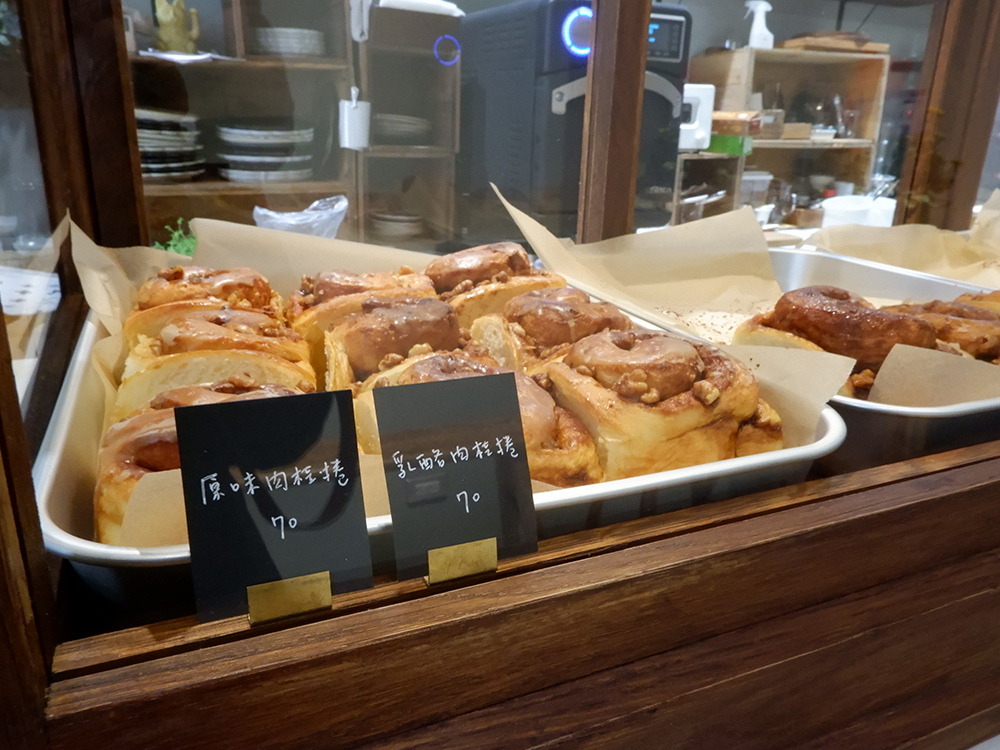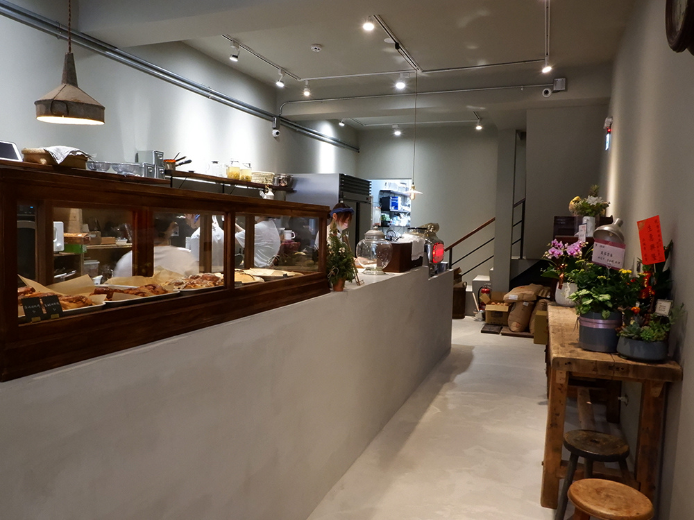 狹長的吧檯上有令人垂涎欲滴的麵包櫃